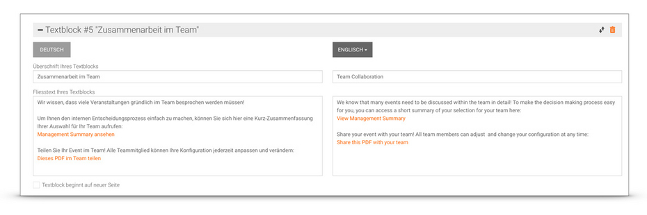 Tipp: Erstellen Sie sich unterschiedlich lange Muster-PDFs verschiedener Event-Konfigurationen, und behalten Sie dabei immer die Bedürfnisse Ihrer Kunden, d.h. verschiedener Kundentypen, im Blick.