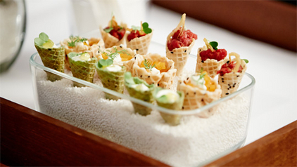 Ob Fingerfood im Flying Service, ein bodenständiges Buffet oder ein festliches gesetztes Essen mit 3 oder mehr Gängen: Mit eventmachine können alle Varianten von Catering ganz einfach konfiguriert und live kalkuliert werden.